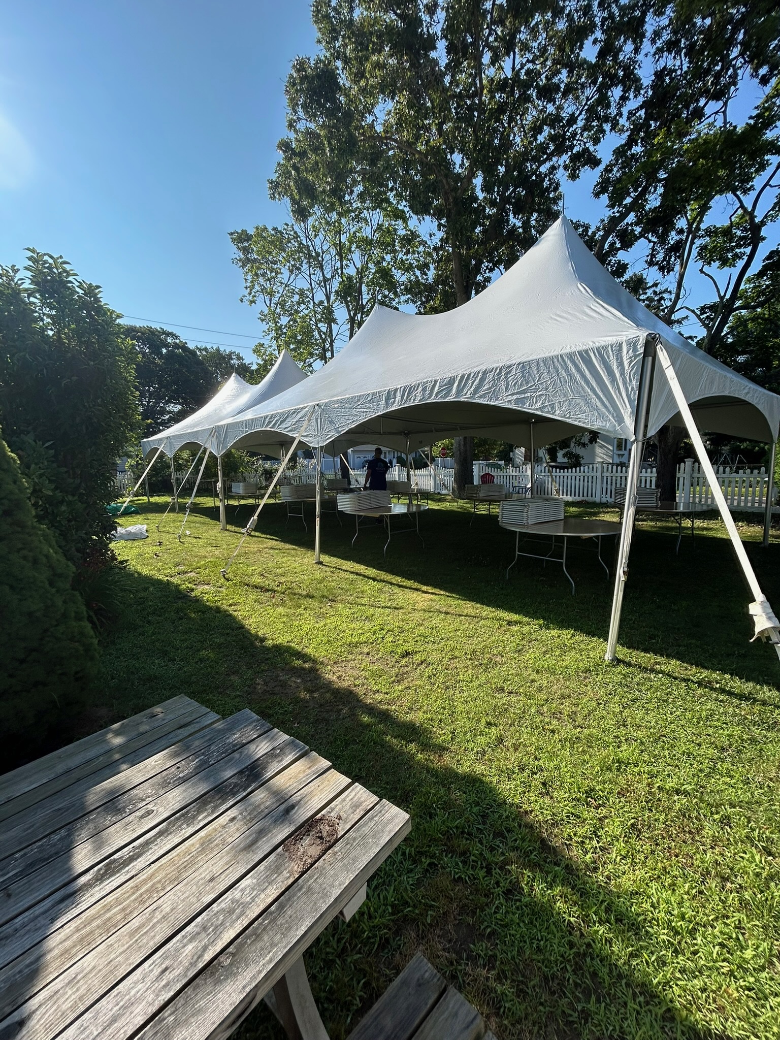 30×40 High Peak Frame Tent – Ideal for holiday party tent rentals for big gatherings or intimate weddings.
